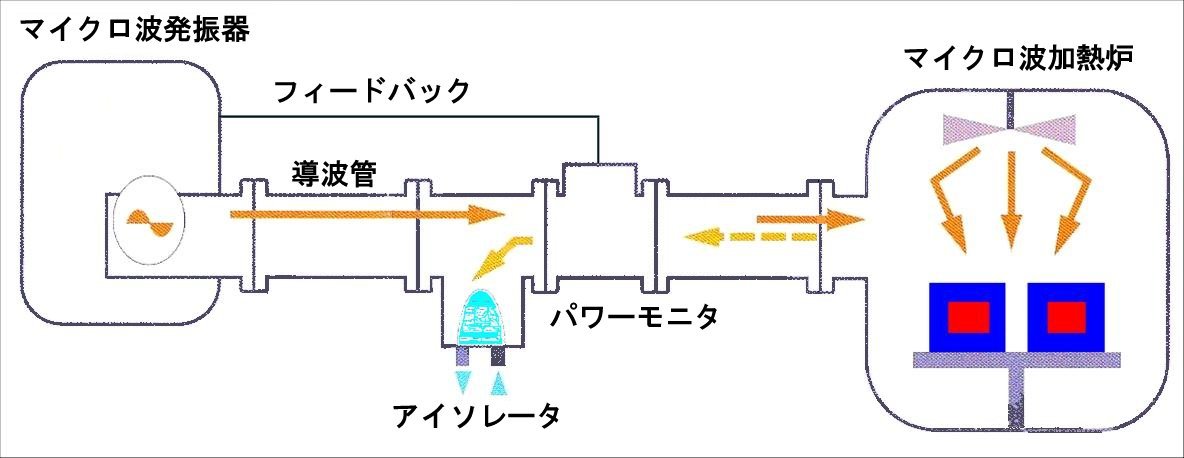 | 数100MHz〜数GHzのマイクロ波をエネルギー として適用する各種装置です。原理的には誘電加熱と全く同じですが、使われる電磁波の波長が短い (=周波数が高い)ため、より広範な素材への適用が可能です。 |